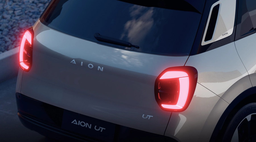 Garis bodi mengalir dengan halus, menciptakan tampilan seamless dan streamline yang menonjolkan karakter elegan sekaligus sporty. Velg berukuran 17 inci memperkuat kesan dinamis. Pengakuan terhadap desain ini juga datang secara internasional: Aion UT berhasil menyabet predikat The Most Valuable Car di Milan Design Week 2025.